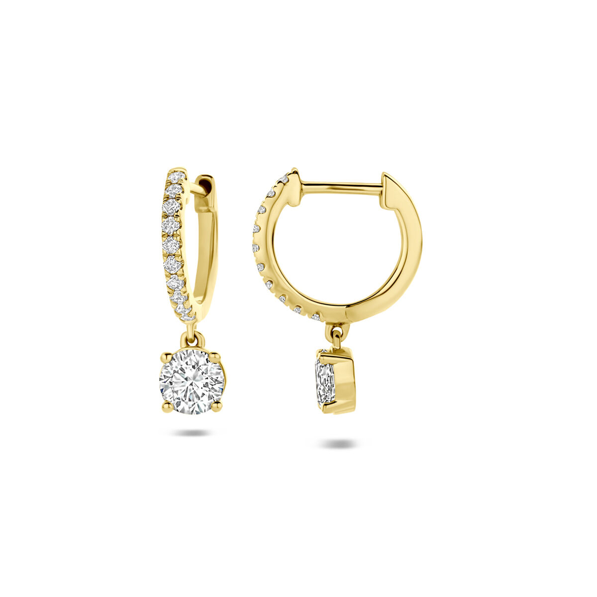 14k Geelgouden klapoorringen uitgevoerd met lab grown diamant. De klapoorringen hebben een totale hoogte van 19mm. Het totale diamantgewicht is 2.48ct. Lab grown diamanten zijn diamanten die ontstaan in een laboratorium. Onder extreem hoge druk en temperatuur wordt het natuurlijk ontstaansproces nagebootst met als eindresultaat een diamant met dezelfde chemische eigenschappen maar met een andere oorsprong.