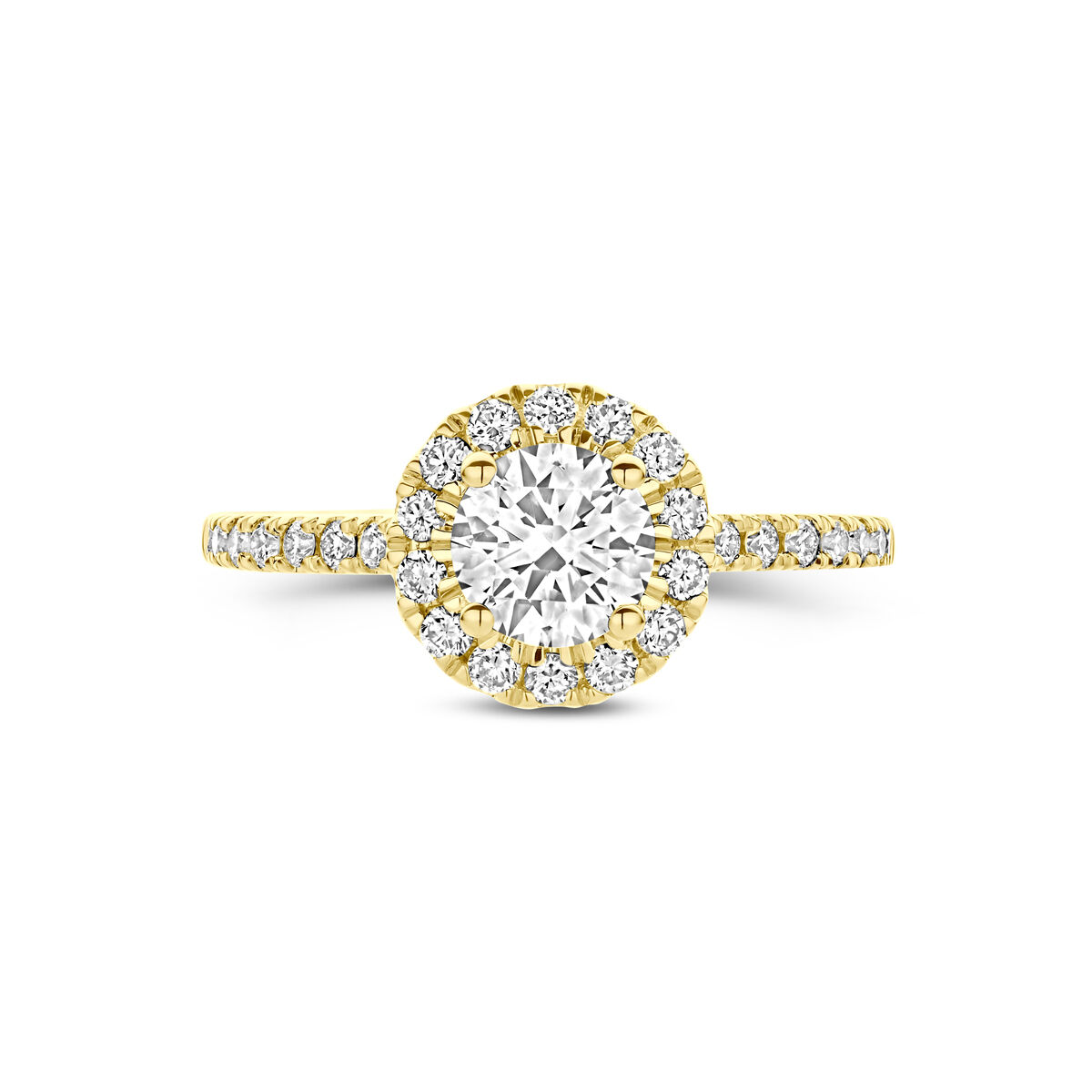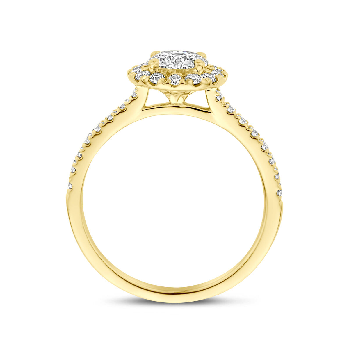 14k Geelgouden ring uitgevoerd met lab grown diamant. De ring heeft een breedte van 9.5mm. Het totale diamantgewicht is 1.10ct. Lab grown diamanten zijn diamanten die ontstaan in een laboratorium. Onder extreem hoge druk en temperatuur wordt het natuurlijk ontstaansproces nagebootst met als eindresultaat een diamant met dezelfde chemische eigenschappen maar met een andere oorsprong.