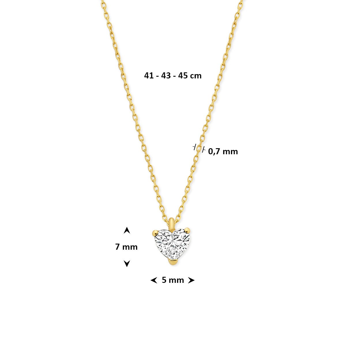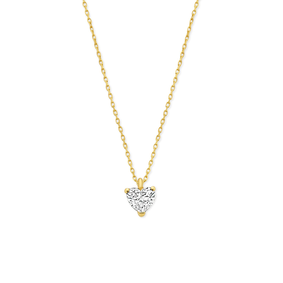 14k Geelgouden collier uitgevoerd met een hartje lab grown diamant. Het collier heeft draaglengtes van 41-43-45cm en een schakelbreedte van 0.7mm. Uitgevoerd met een karabijnsluiting. Onder extreem hoge druk en temperatuur wordt het natuurlijk ontstaansproces nagebootst met als eindresultaat een diamant met dezelfde chemische eigenschappen maar met een andere oorsprong.