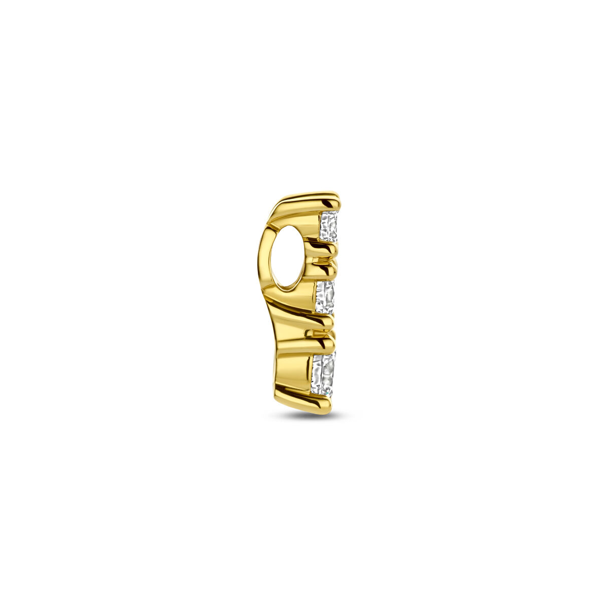 14k Geelgouden hanger uitgevoerd met lab grown diamant. De hanger heeft een afmeting van 12.5x4,5mm. Het totale diamantgewicht is 0.50ct. Onder extreem hoge druk en temperatuur wordt het natuurlijk ontstaansproces nagebootst met als eindresultaat een diamant met dezelfde chemische eigenschappen maar met een andere oorsprong.