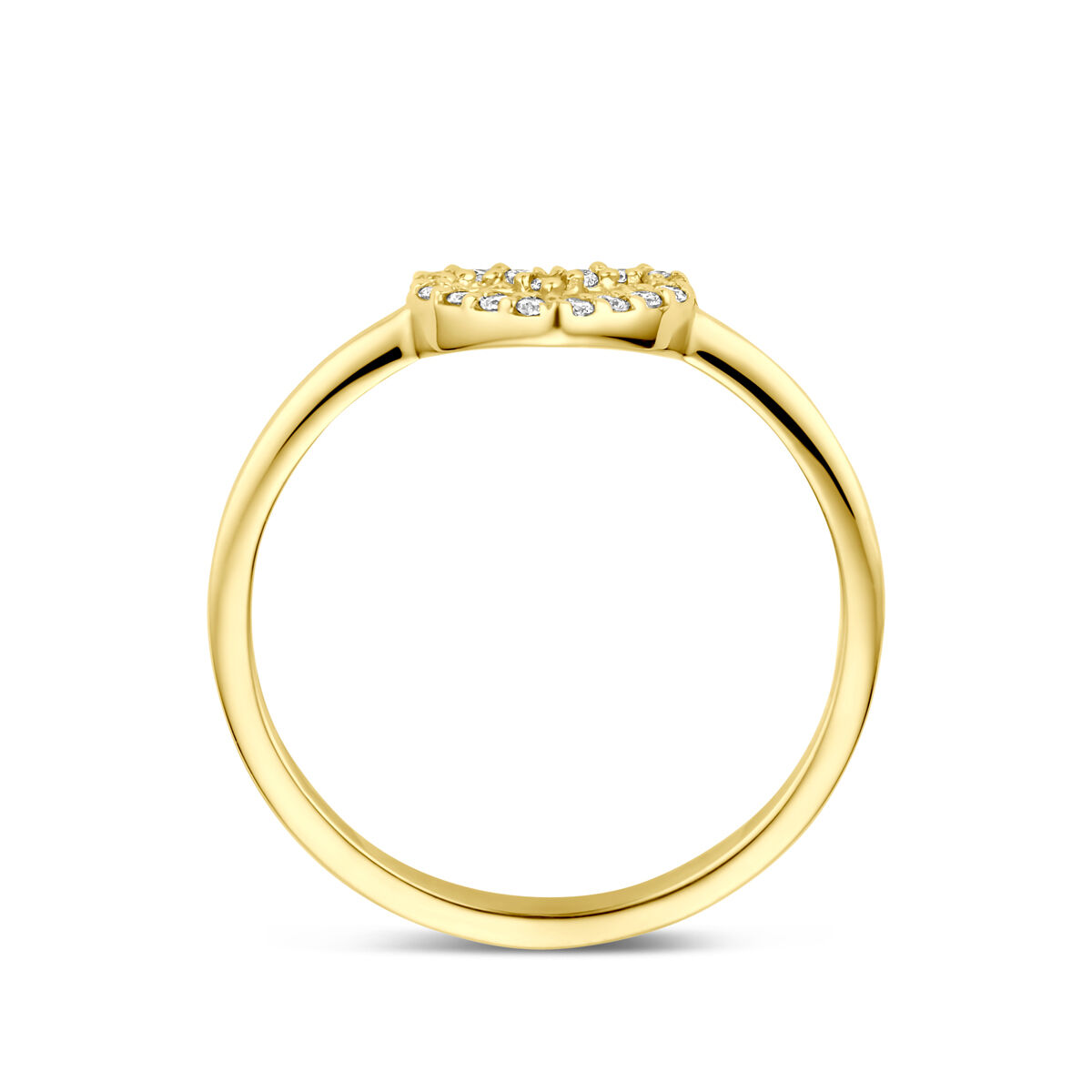 14k Geelgouden ring uitgevoerd met een hartje en lab grown diamant. De ring heeft een afmeting van 8x6.5mm. Het totale diamantgewicht is 0.09ct.