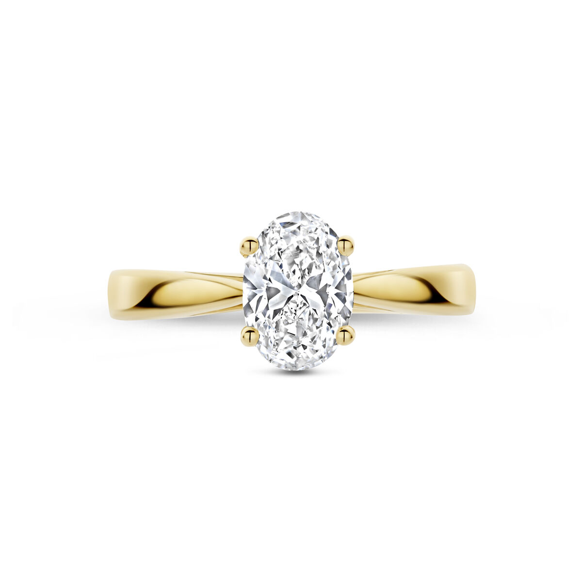 14k Geelgouden ring uitgevoerd met lab grown diamant. De ring heeft en afmeting van 8.5x6mm.