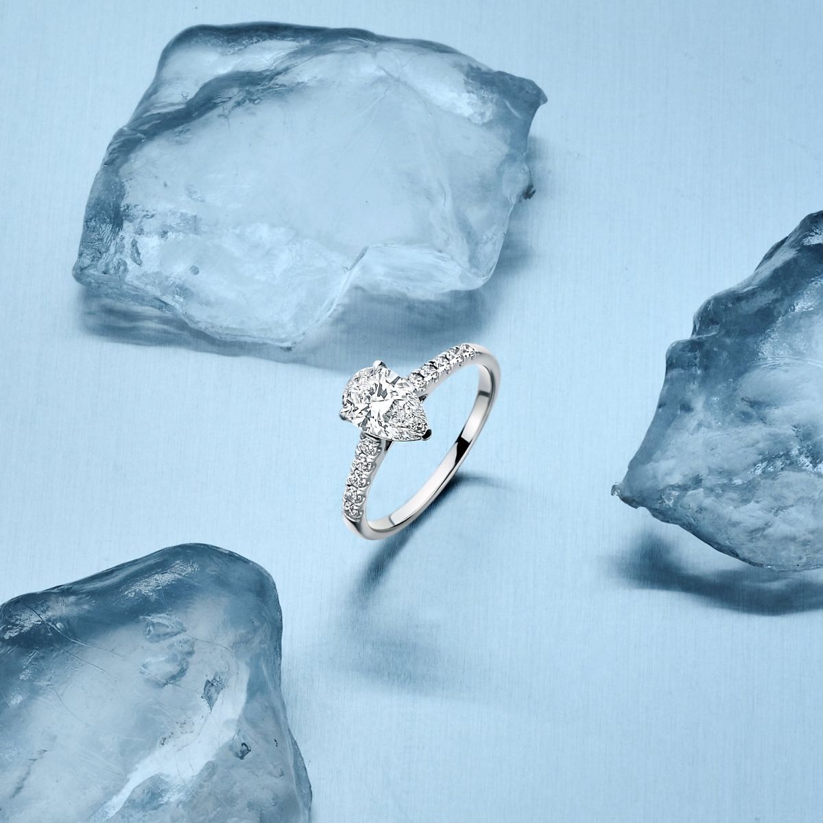 14k Witgouden ring uitgevoerd met lab grown diamant. De ring heeft een breedte van 9mm. Het totale diamantgewicht is 1.22ct. Lab grown diamanten zijn diamanten die ontstaan in een laboratorium. Onder extreem hoge druk en temperatuur wordt het natuurlijk ontstaansproces nagebootst met als eindresultaat een diamant met dezelfde chemische eigenschappen maar met een andere oorsprong.